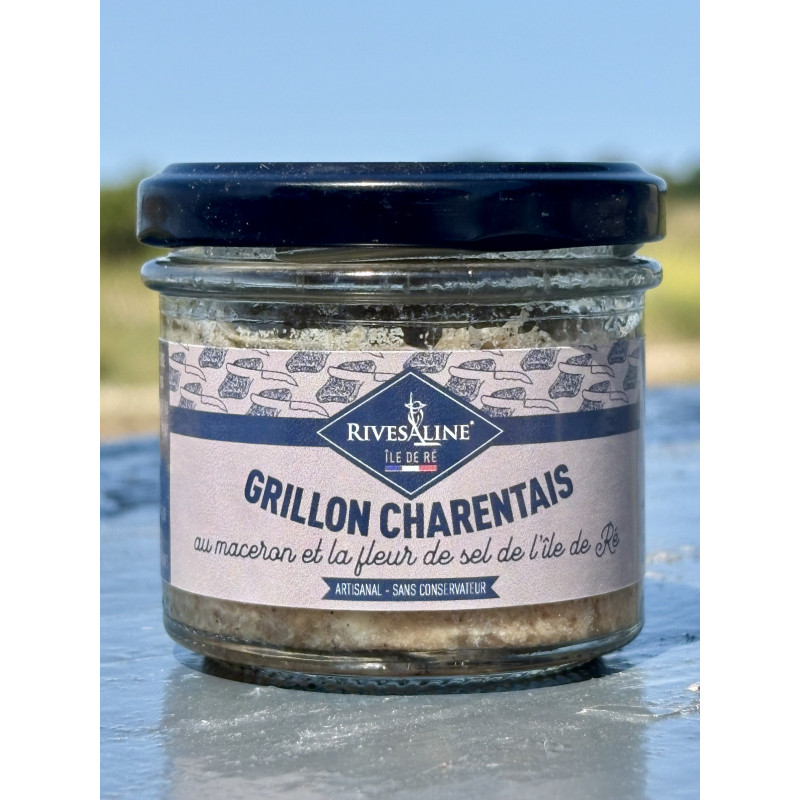 Découvrez notre Grillon Charentais, une spécialité traditionnelle revisitée avec les trésors de l'Île de Ré. Préparé selon une recette authentique, ce grillon est sublimé par notre propre fleur de sel de l'Île de Ré, délicatement récoltée à la main dans nos marais salants.