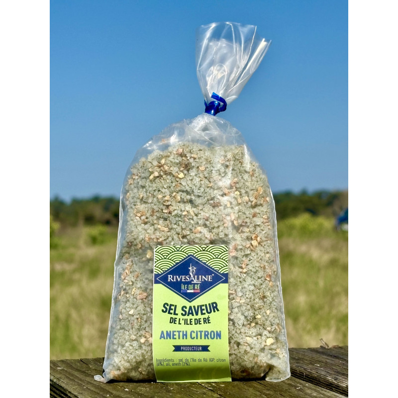 e gros sel aneth citron est récolté à la main dans nos marais salants sur l'Île de Ré. C'est un produit artisanal qui apporte la pureté du sel de l'Île de Ré à votre cuisine.